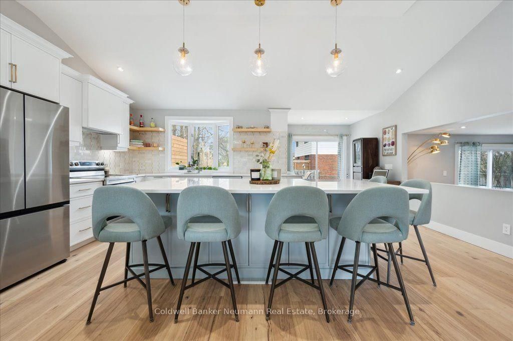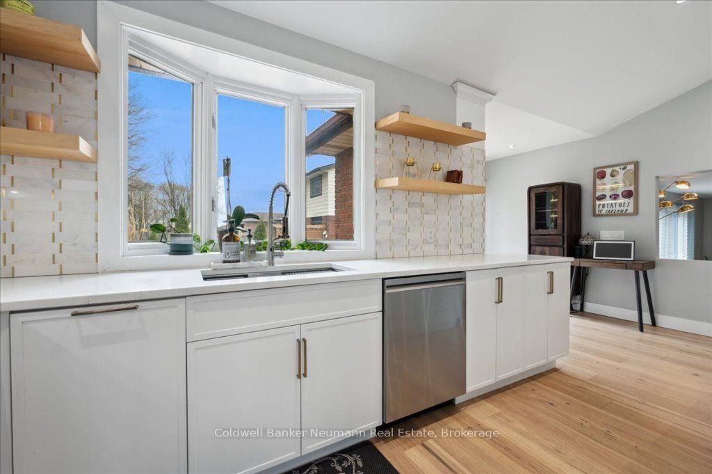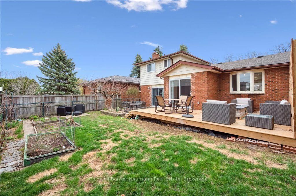 Upstairs offers three spacious bedrooms, including a large primary suite, and a stylishly renovated bathroom with high-end finishes. The finished basement adds a rec room, 3-piece bath, laundry, and storage. Outside, enjoy a new deck with a gas fire table, BBQ hookup, hot tub rough-in, and a stone patio. Located in a quiet, family-friendly neighbourhood with quick access to major highways and all the conveniences of Kitchener-Waterloo, this beautiful gem truly has it all. Don’t miss your opportunity to own this home today!