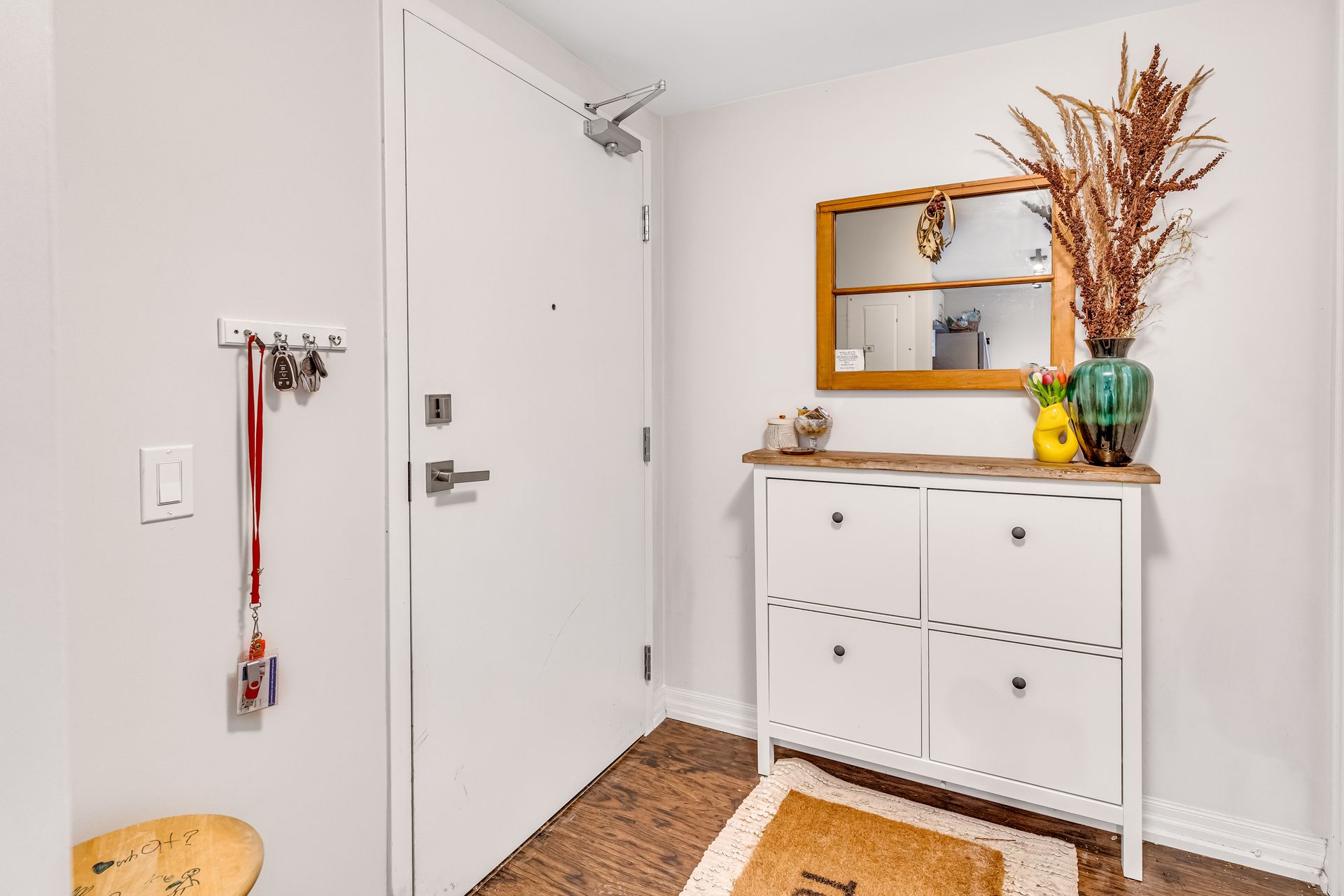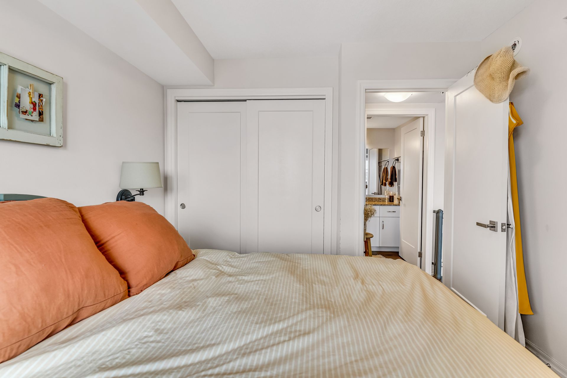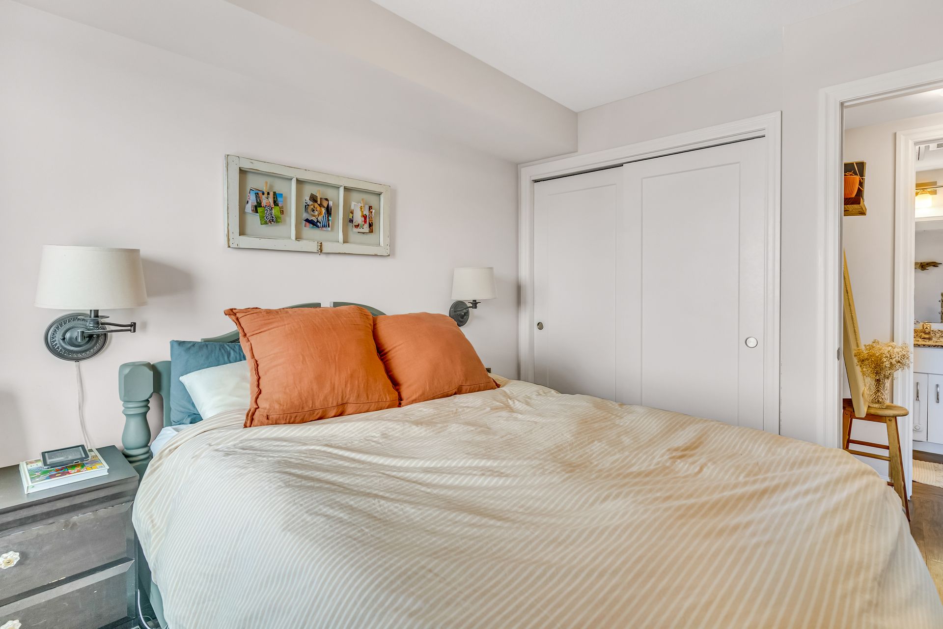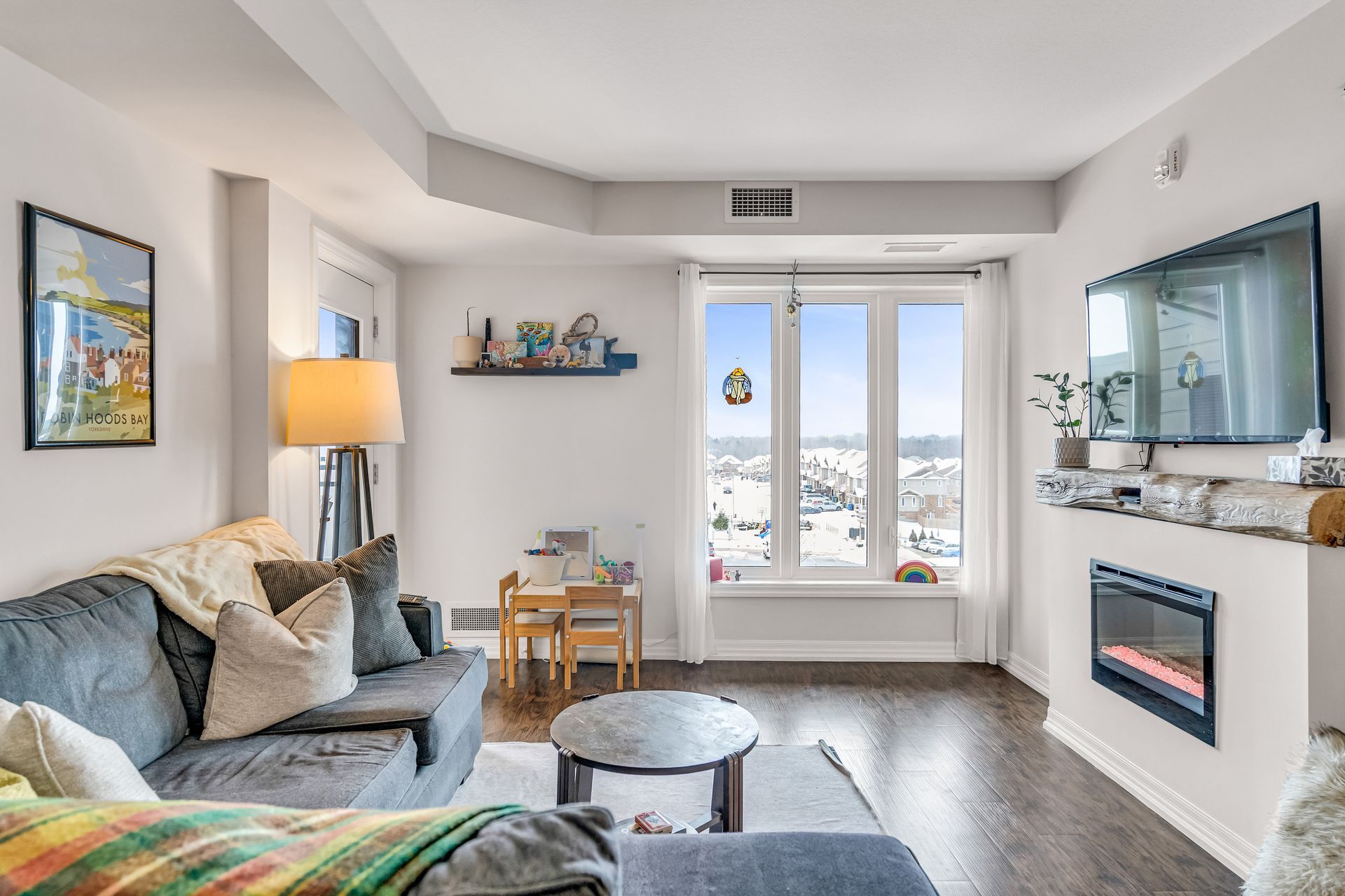 This bright and airy 2-bedroom, 1-bathroom unit features an open-concept layout with west-facing views, offering stunning sunsets and abundant natural light.The stylish modern kitchen boasts white cabinetry, stainless steel appliances, granite countertops, and space for both a kitchen table and an island. The spacious living room includes a custom-built electric fireplace, adding warmth and functionality as a media unit.