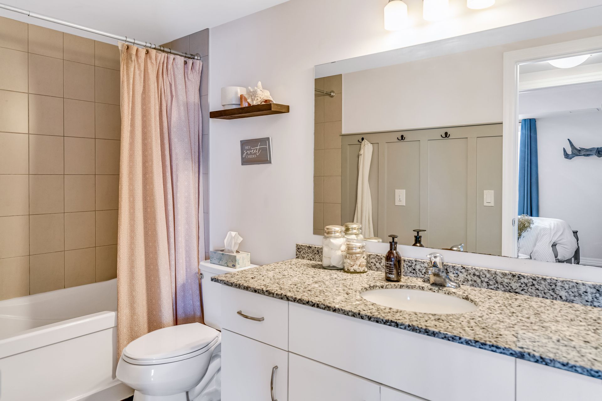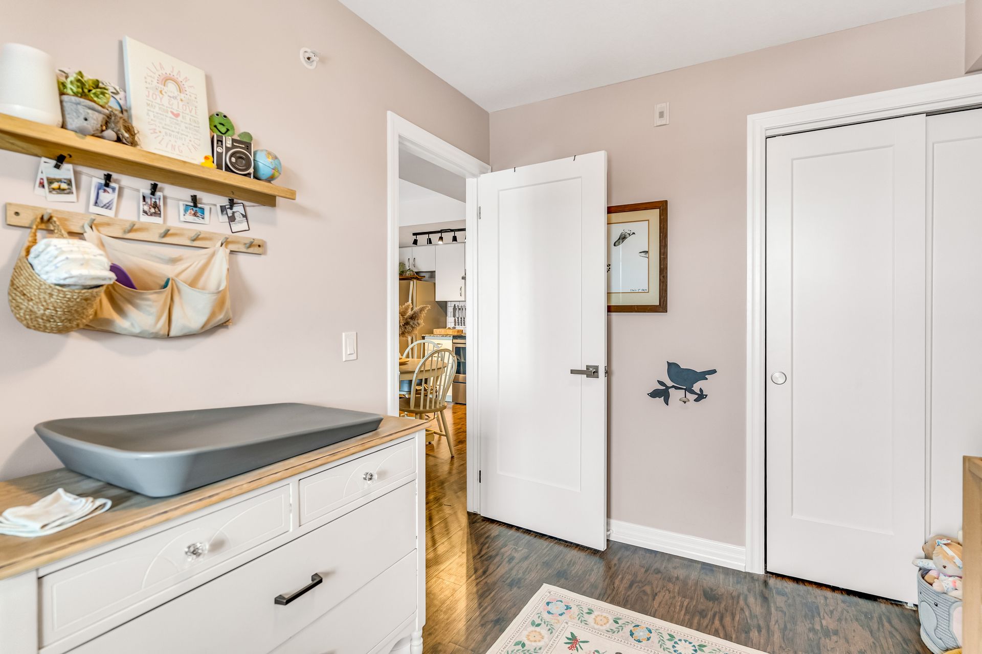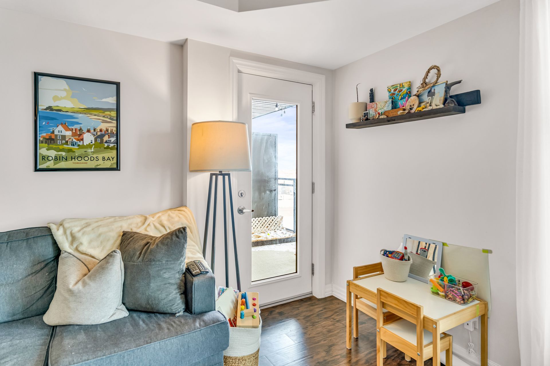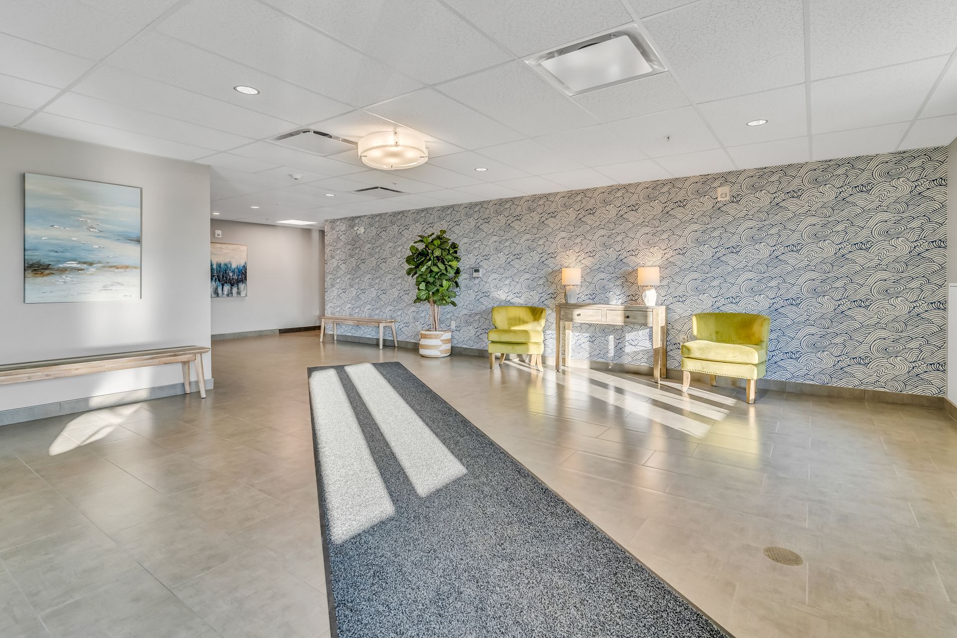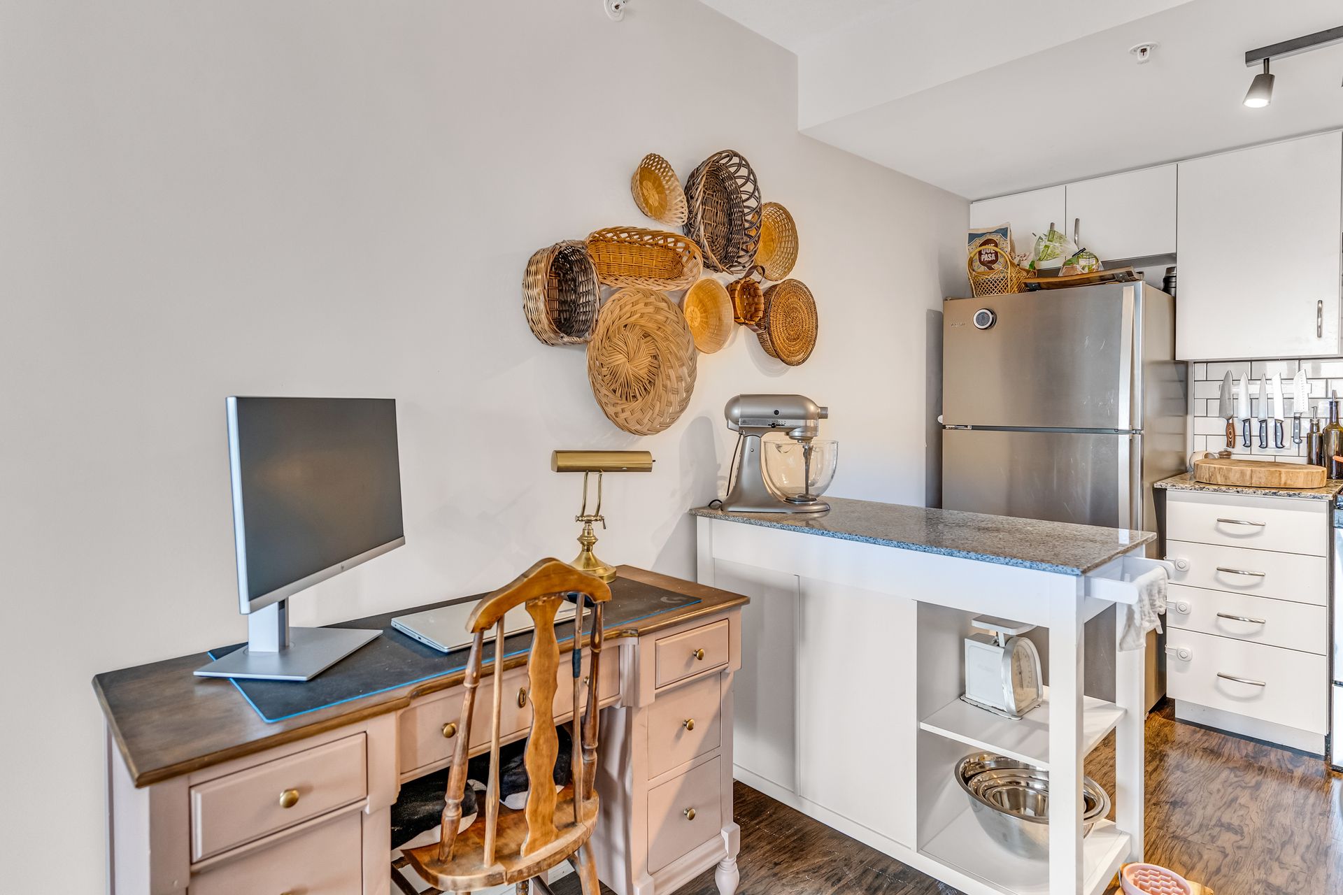 This bright and airy 2-bedroom, 1-bathroom unit features an open-concept layout with west-facing views, offering stunning sunsets and abundant natural light.The stylish modern kitchen boasts white cabinetry, stainless steel appliances, granite countertops, and space for both a kitchen table and an island. The spacious living room includes a custom-built electric fireplace, adding warmth and functionality as a media unit.