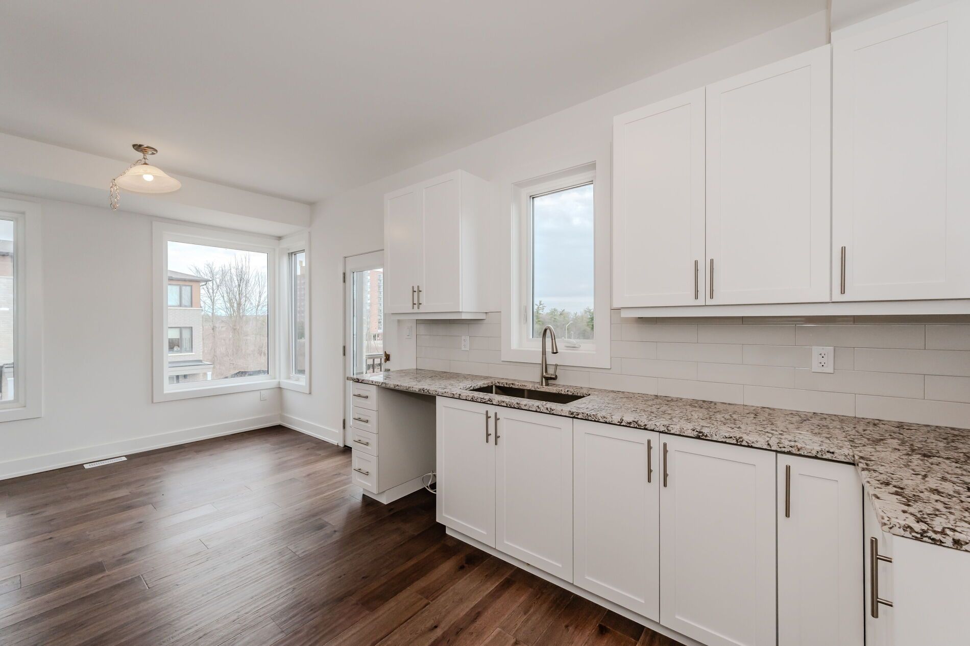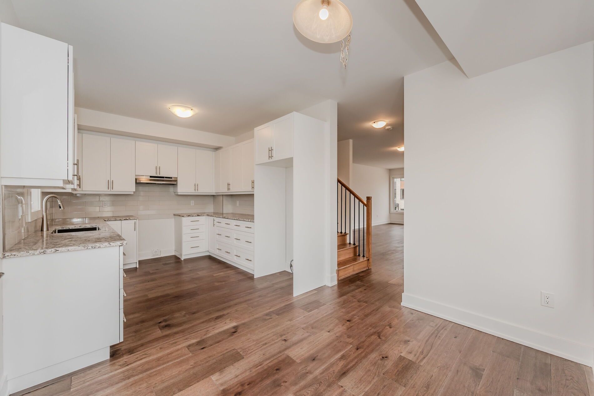 The main floor invites you to unwind or entertain, with a versatile rec room ready to accommodate your lifestyle. A breathtaking family room awaits, boasting high ceilings and floods of natural light, creating an inviting atmosphere for relaxation. The chef's kitchen is a culinary haven, featuring upgraded cabinetry, granite counters, and a cozy breakfast nook. Step outside to the elevated deck, perfect for enjoying the outdoors. Upstairs, retreat to the primary bedroom sanctuary complete with walk-in closets and a luxurious ensuite bath. With the laundry area conveniently located nearby, this home seamlessly blends comfort and convenience. Don't let this opportunity slip away – schedule your viewing today and experience the epitome of townhome living!