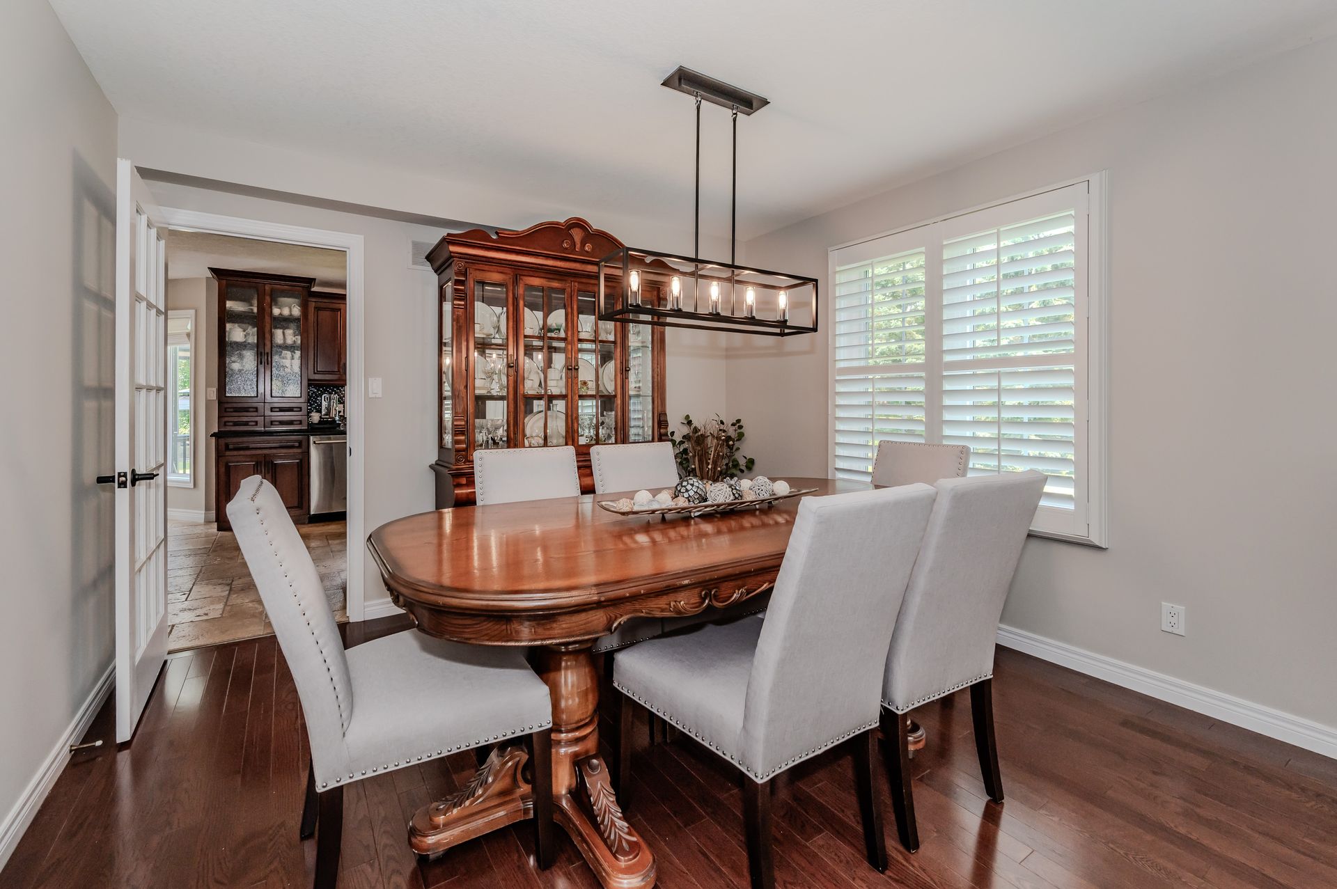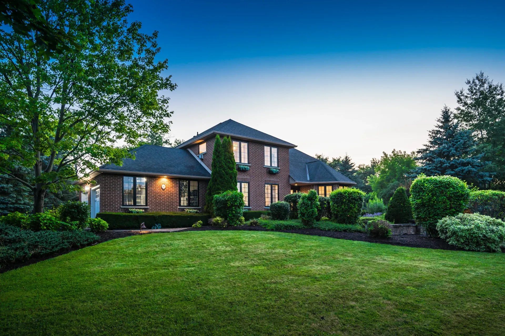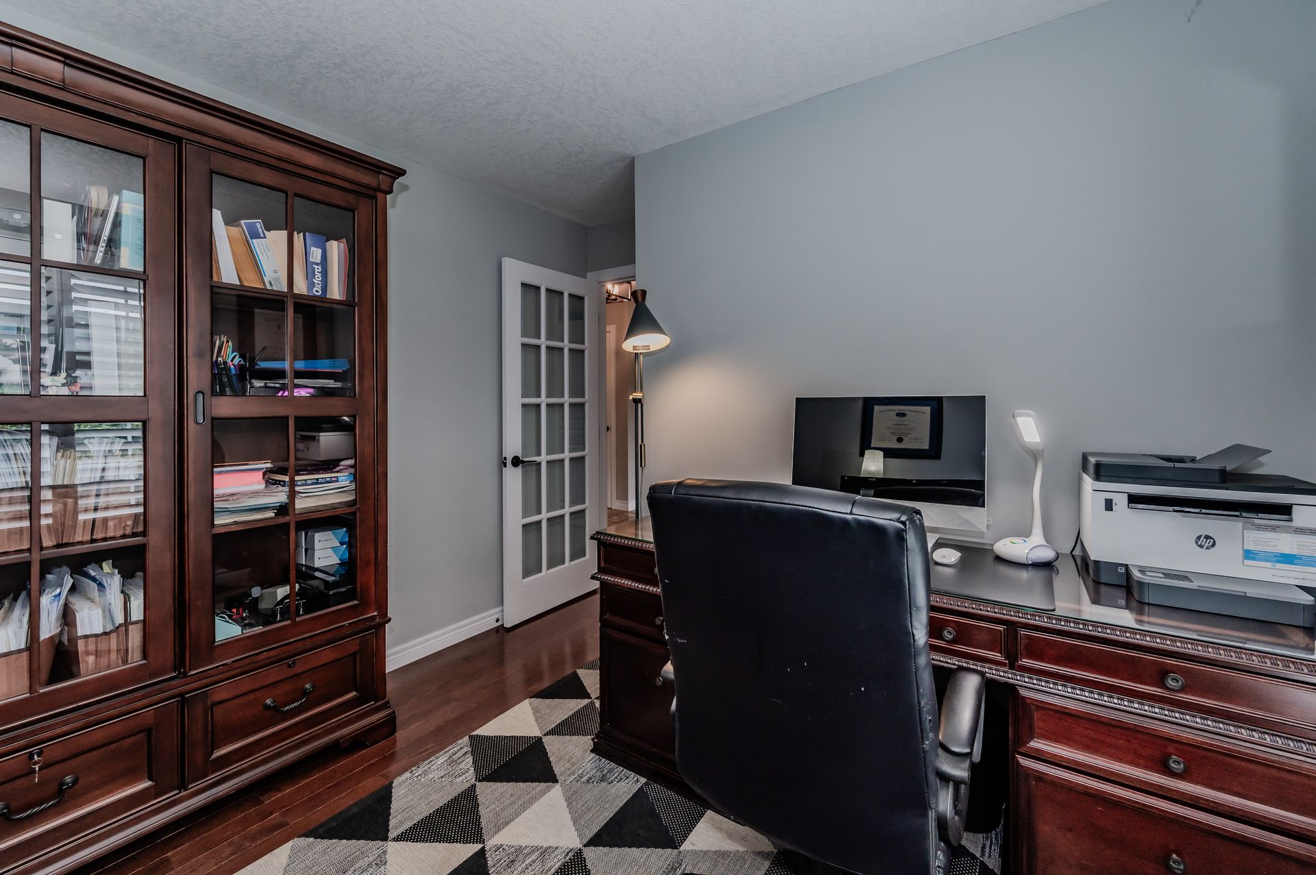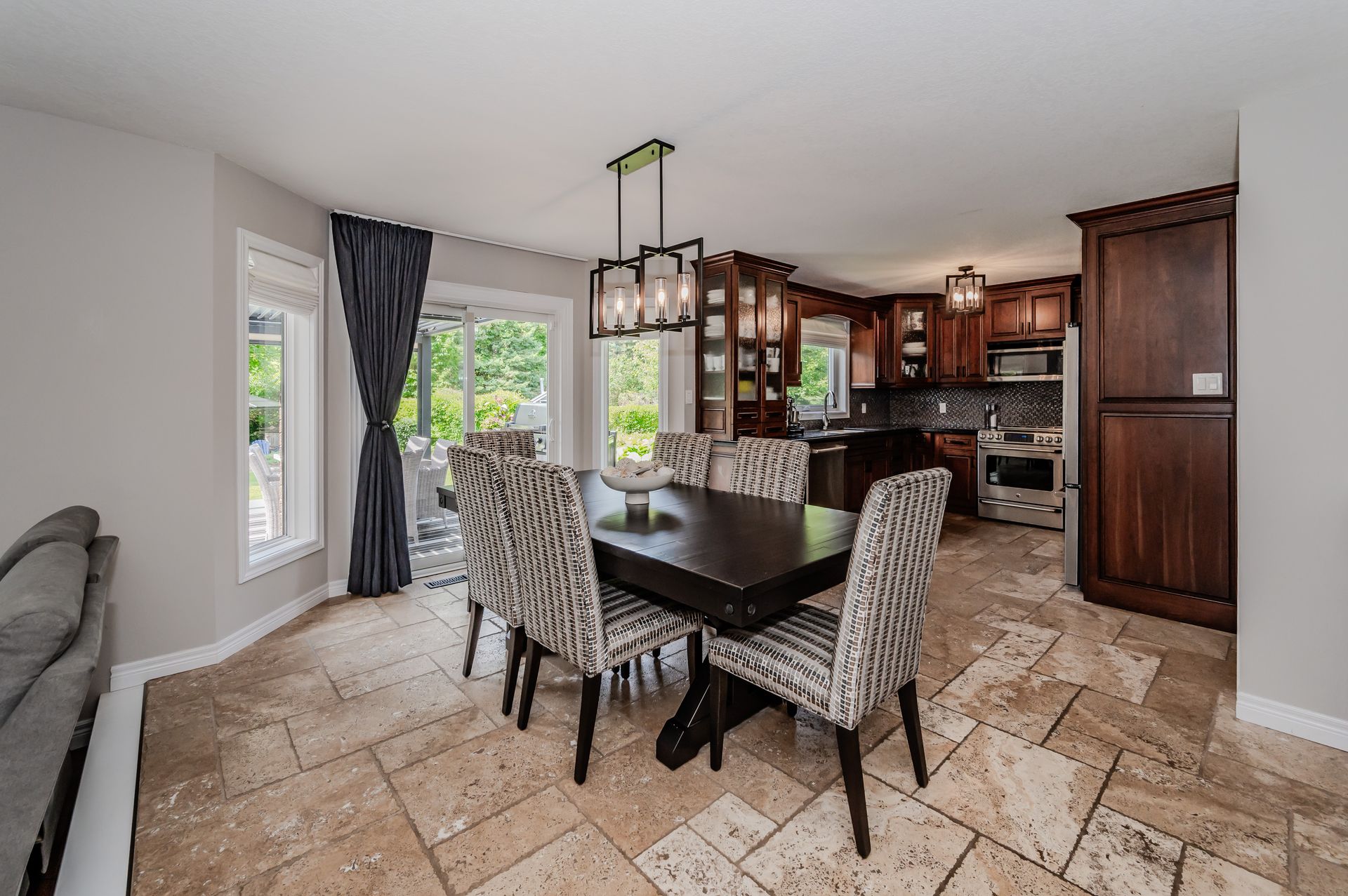 Step inside the all-brick home to find a spacious, light-filled foyer with vaulted ceilings. The main level includes a formal dining area, a cozy seating area, a mudroom with garage access, a home office, and a two-piece washroom. At the rear, enjoy a custom Barzotti kitchen with views of the lush backyard and a living room with a gas fireplace, creating a perfect blend of style and comfort.