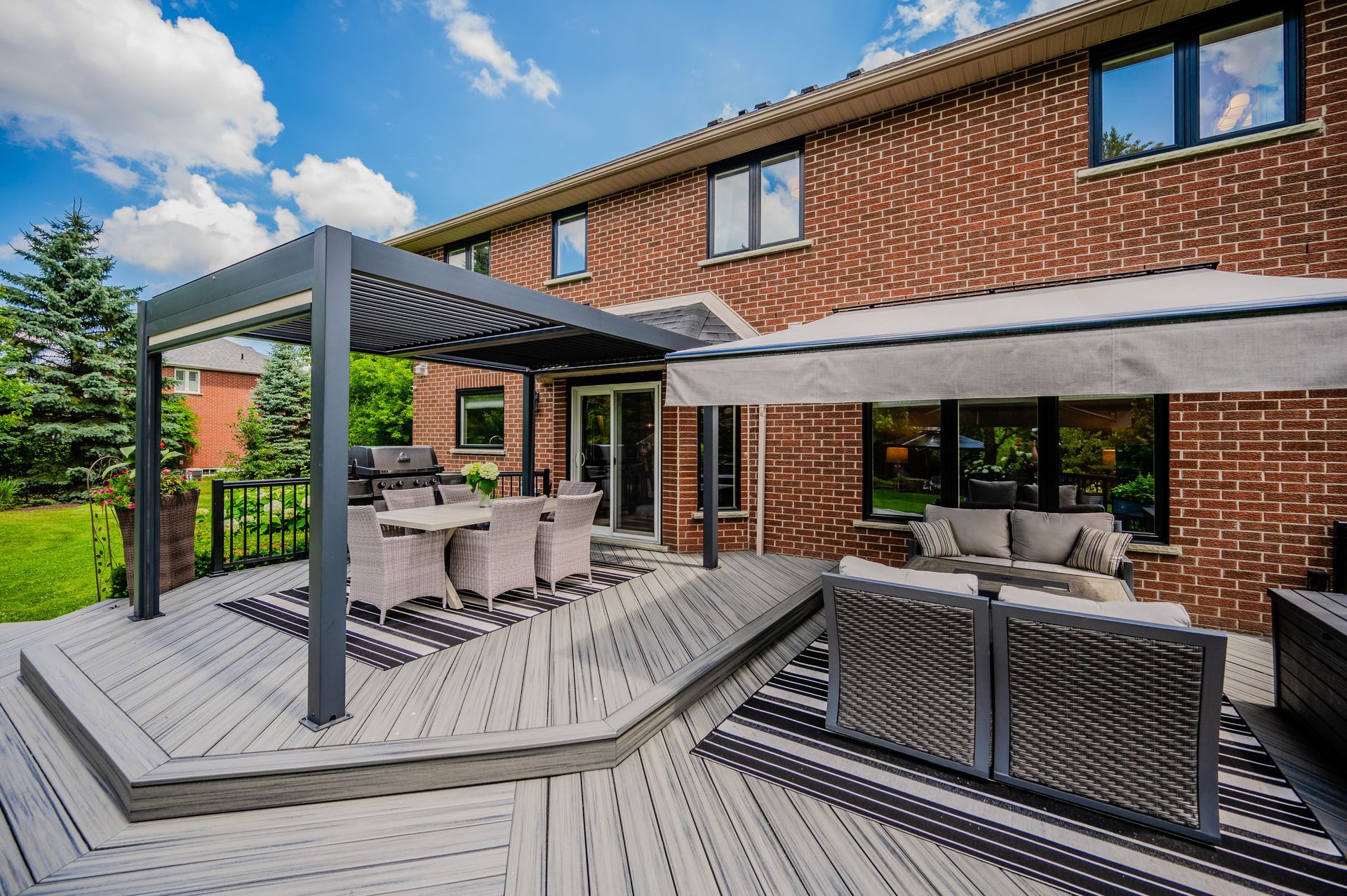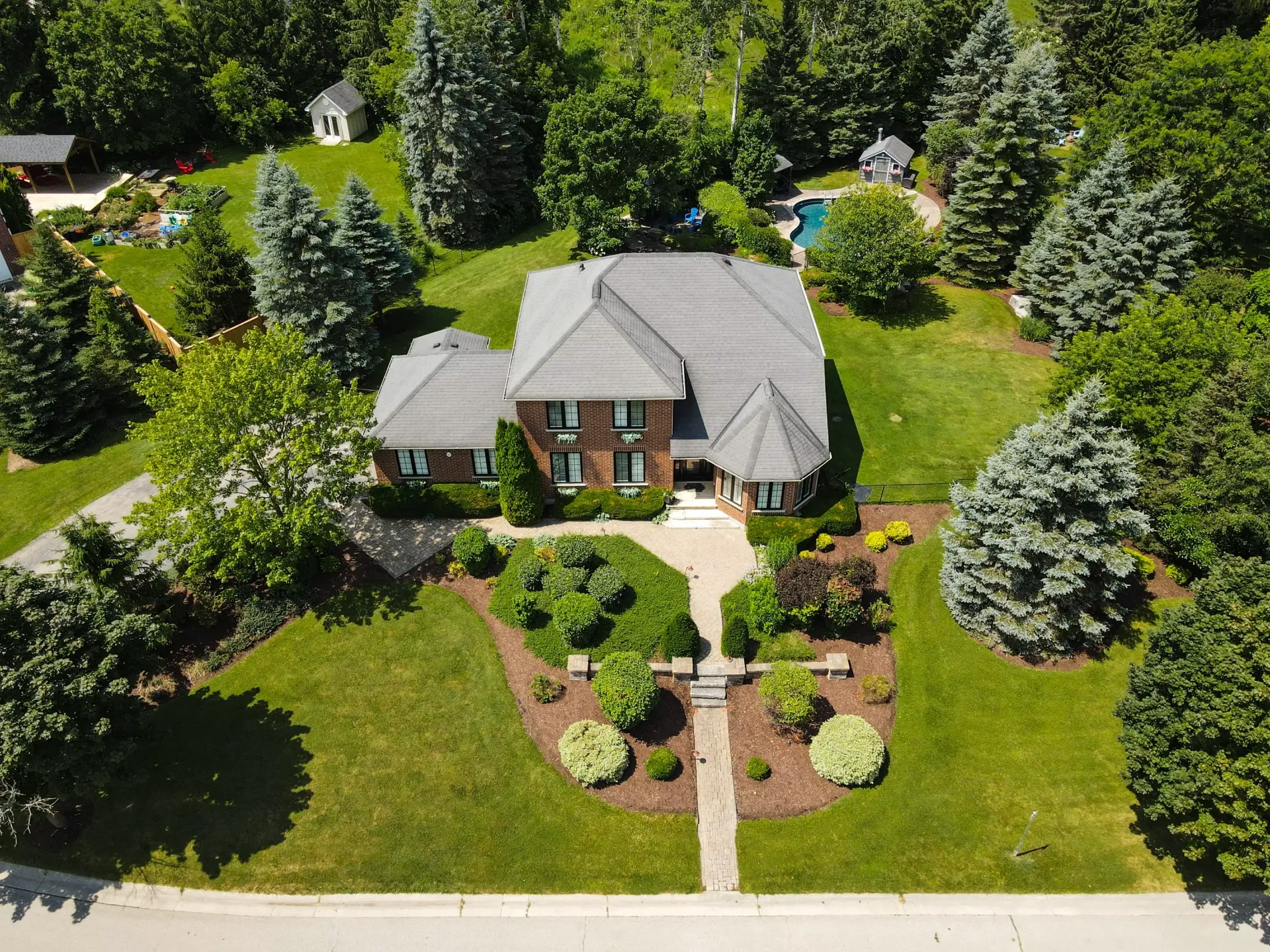 This stunning reverse pie-shaped lot is designed to be an entertainer's paradise, featuring an expansive, professionally landscaped yard with three distinct outdoor entertaining areas. Enjoy gatherings on the composite deck, relax under the covered pergola with a cozy fire pit, or take a dip in the inground pool, complete with its own pergola and pool shed. With ample lawn space for kids or pets to play, this outdoor oasis is equipped with an irrigation system, hot tub hookup, and outdoor landscaping speakers, ensuring that your outdoor living experience is as convenient as it is enjoyable.