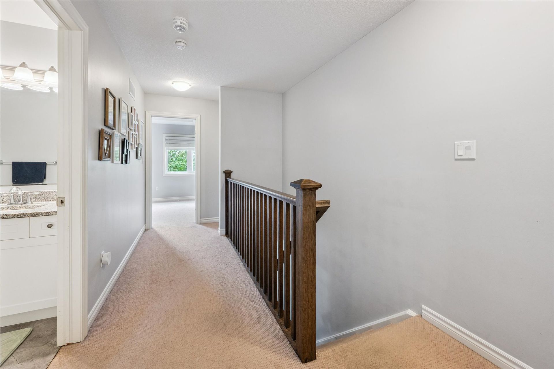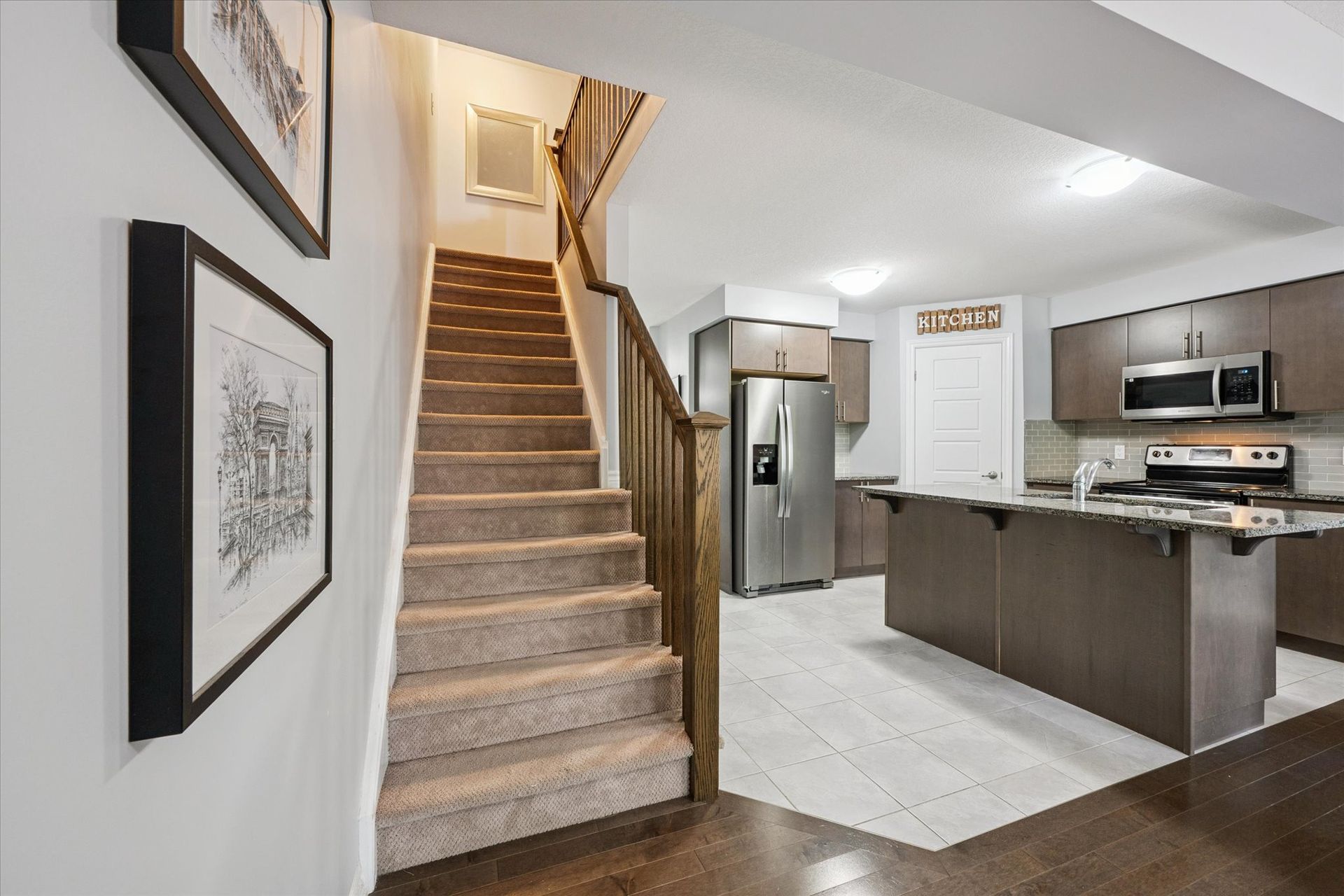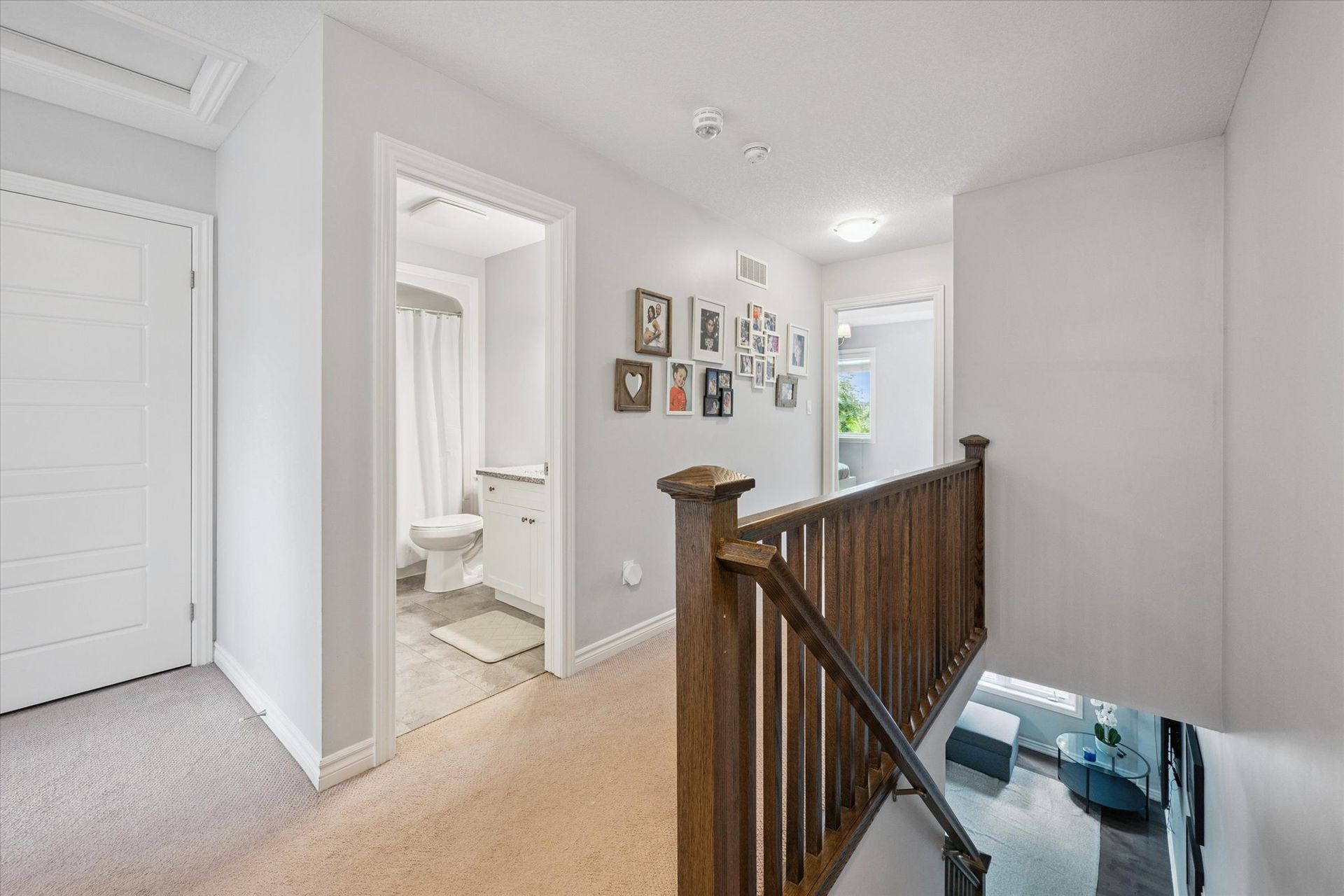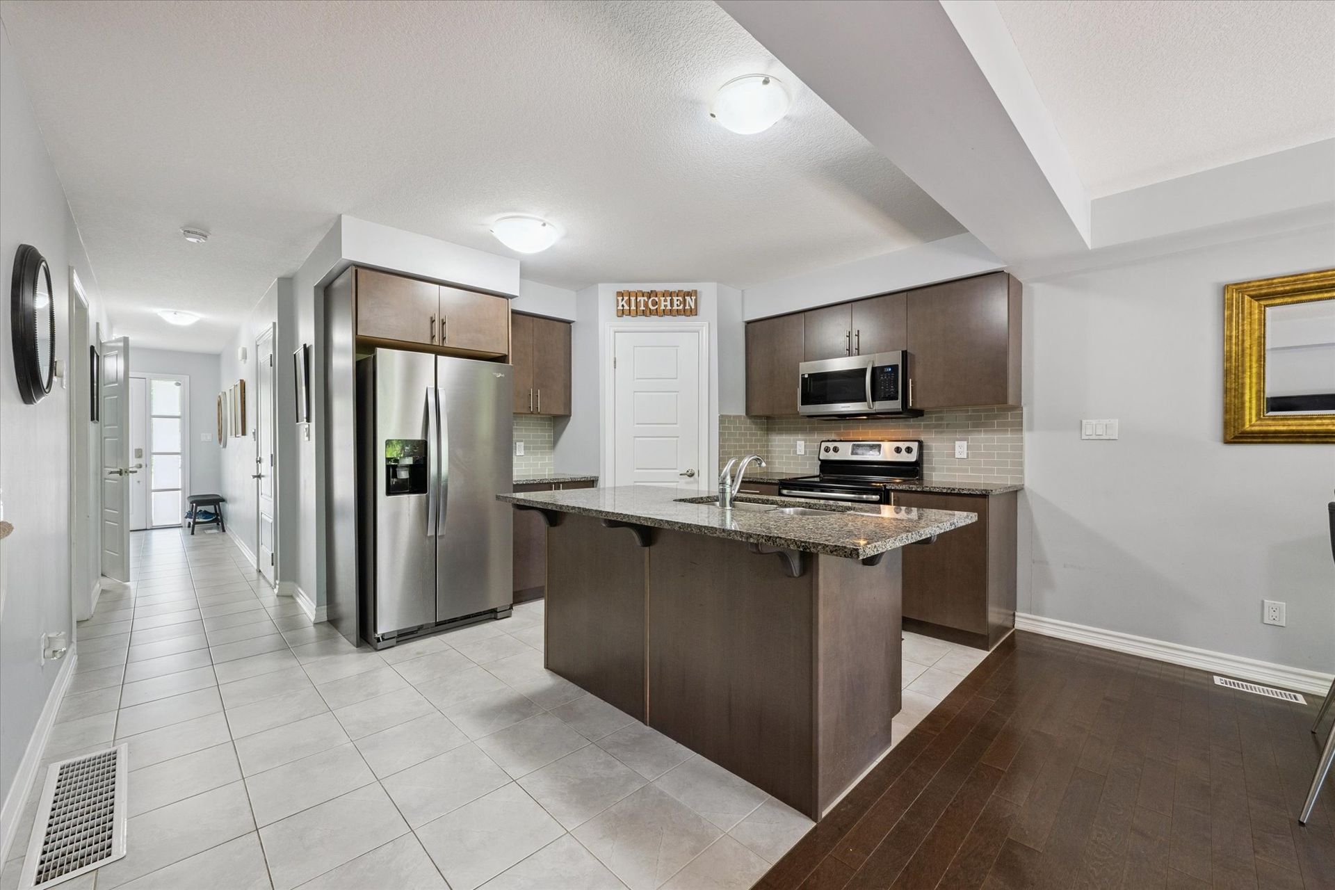 From the moment you step inside, pride of ownership is clear. The open-concept main floor features a stylish kitchen with stainless steel appliances, granite countertops, subway tile backsplash, walk-in pantry, and an island perfect for entertaining. The bright living room boasts modern hardwood floors and a walkout to your private deck—an ideal spot to relax and enjoy peaceful, tree-lined views. Upstairs, the spacious primary suite offers double closets and a 4-piece ensuite. Two additional bedrooms, another full bathroom, and convenient upper-level laundry complete the second floor. The fully finished basement adds even more flexibility with space for a rec room, home office, gym, or guest suite—plus an additional full bath.