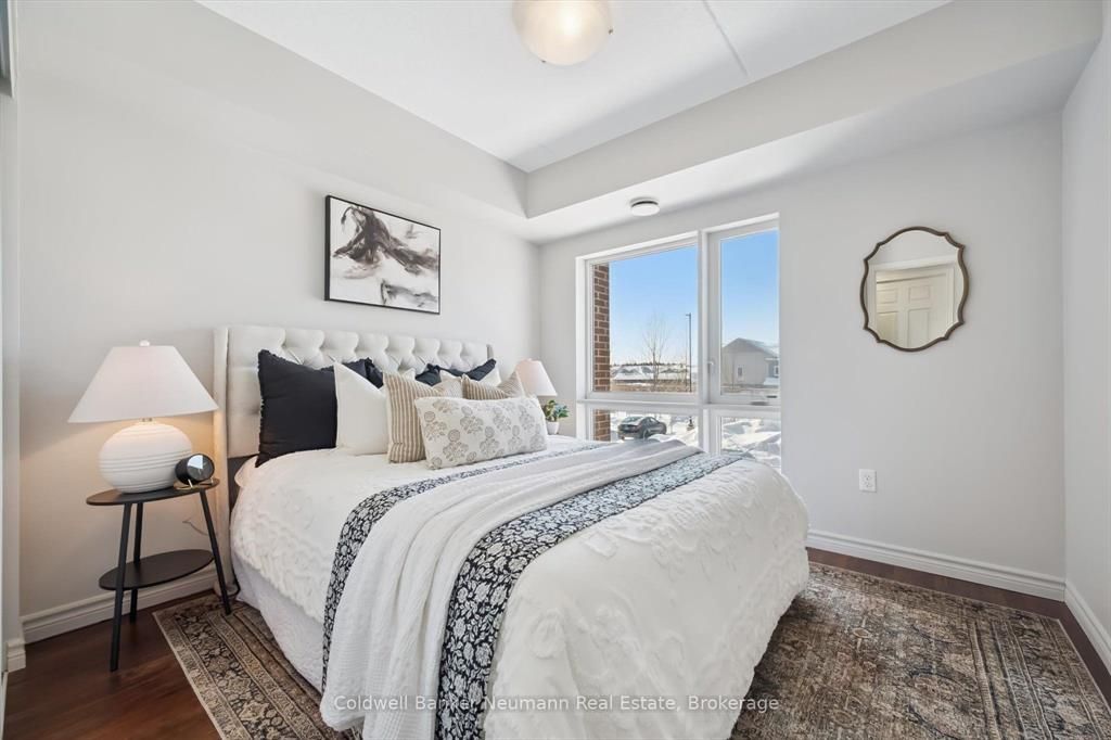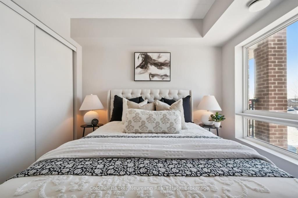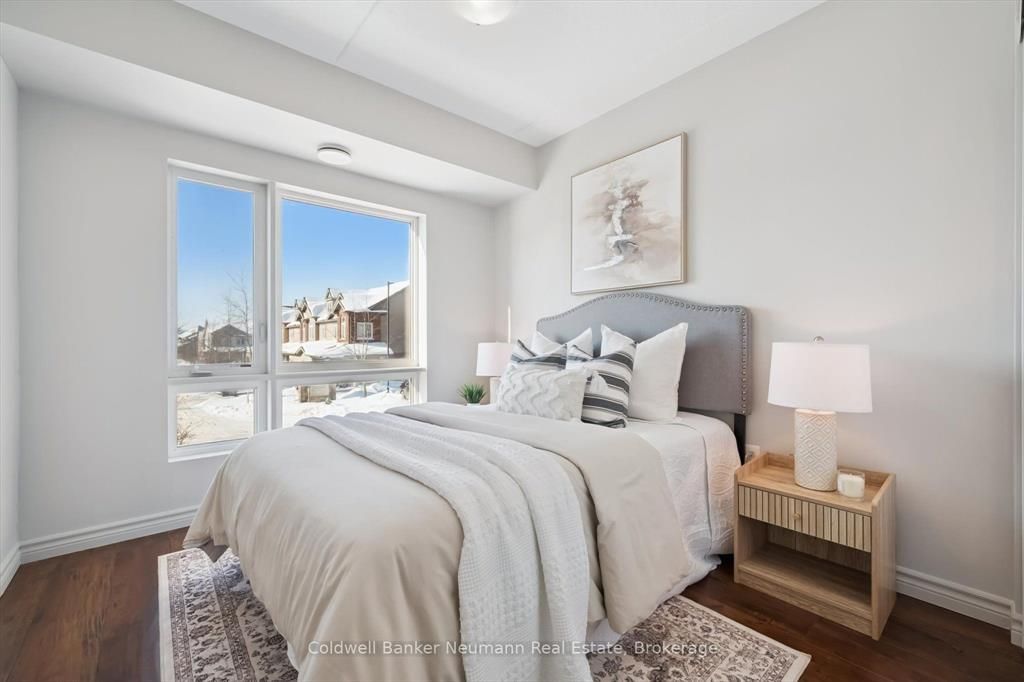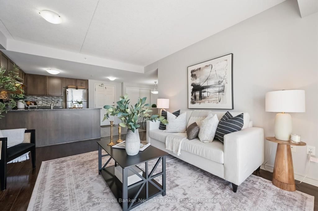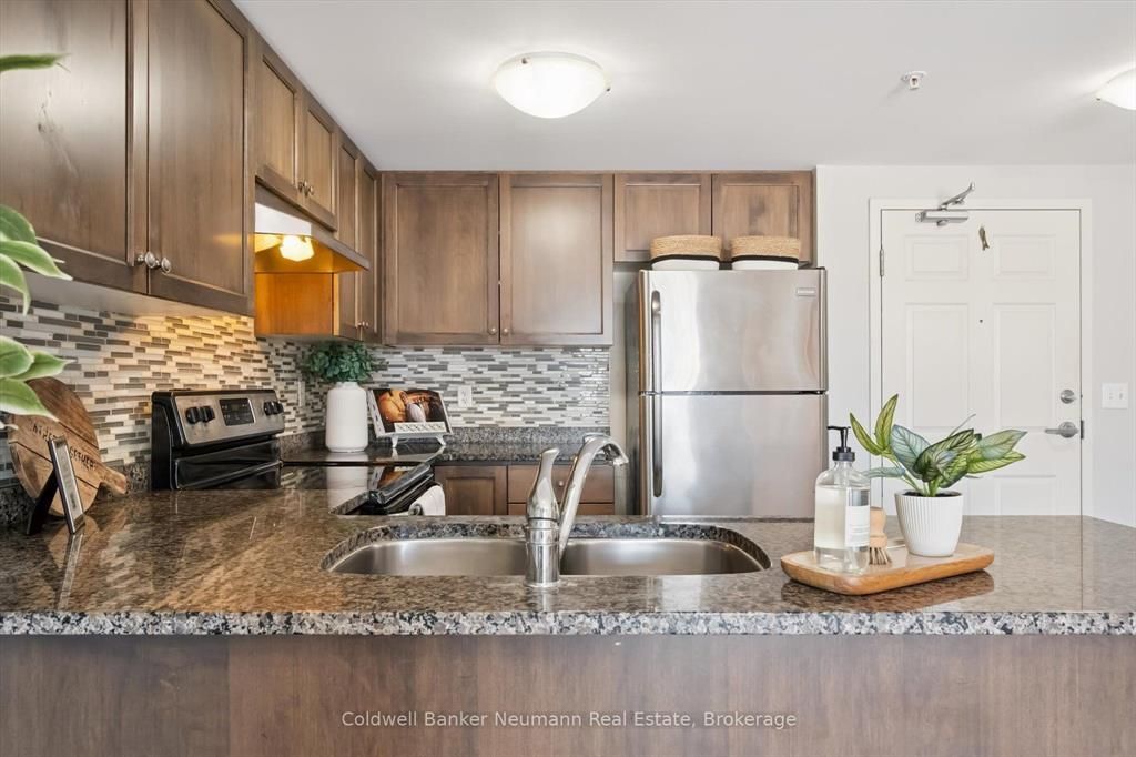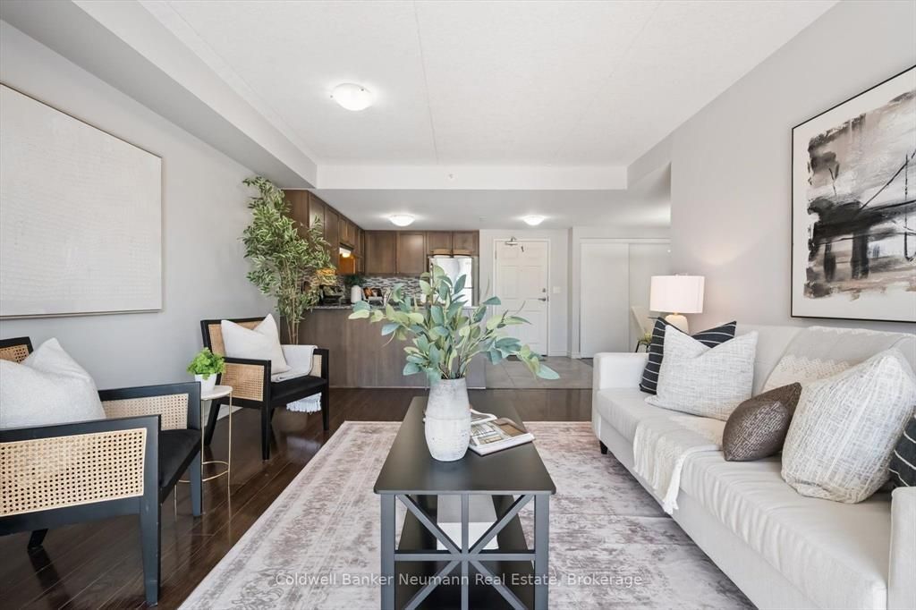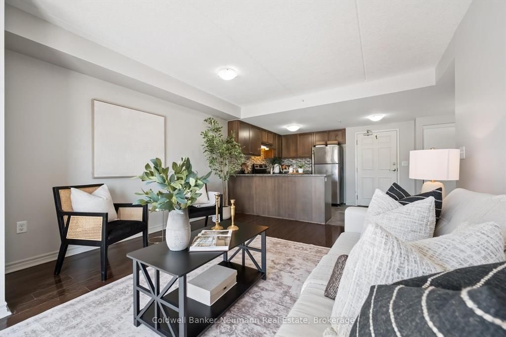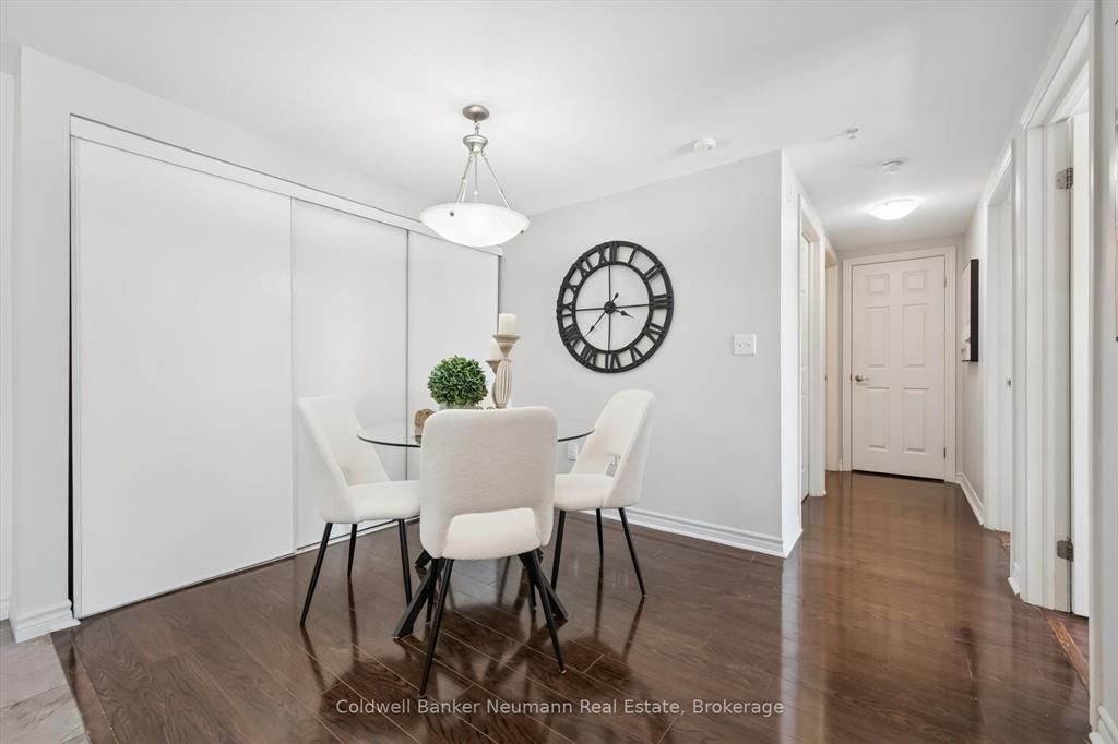 Welcome to 209-45 Kingsbury Sq! This bright and well-maintained 2 bedroom + den condo offers a smart, functional layout in the heart of South Guelph. The den has been thoughtfully converted into a dedicated dining space, opening up the living area and improving flow for everyday living and entertaining. The kitchen features granite countertops, modern cabinetry, a mosaic backsplash, and stainless steel appliances. Both bedrooms are generously sized, and the unit includes convenient in-suite laundry.